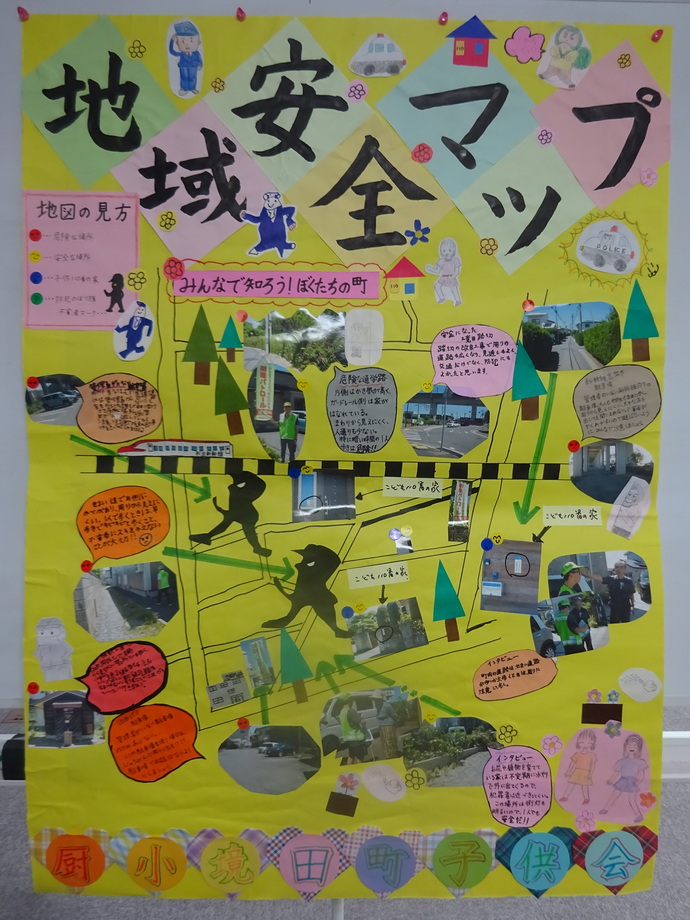 各作品とも犯罪が起こりやすい場所とされる「入りやすく見えにくい場所」や、危ない目に遭いそうになった場合に助けてくれる場所(110番の家など)がわかりやすく表現された素晴らしい出来栄えでした。